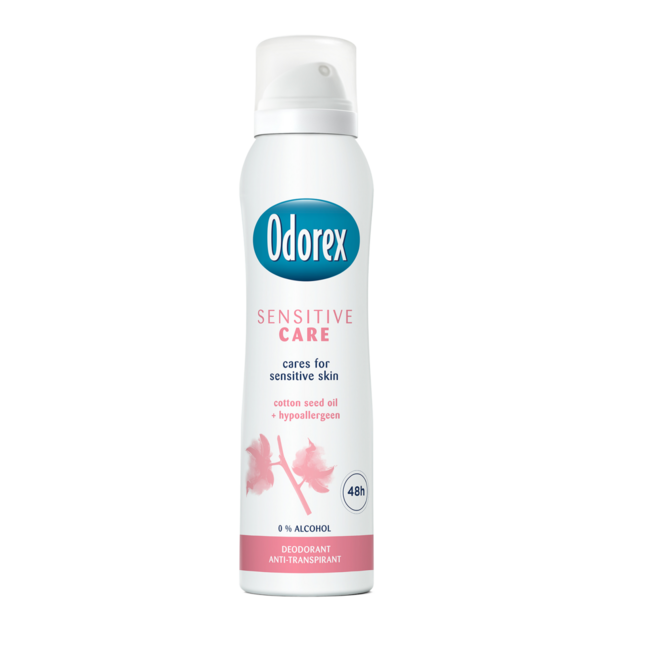 Desideri 48 ore di freschezza senza irritazioni? Lo Spray Odorex Sensitive Care offre alla tua pelle sensibile una protezione affidabile. Senza alcol, con olio di cotone nutriente e Bisabololo per comfort e sicurezza quotidiani. Sentiti spensierato e fresco tutto il giorno.