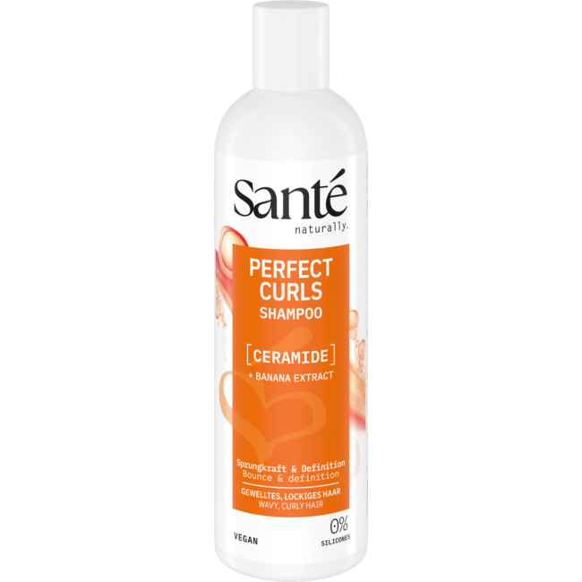 SANTE PERFECT CURLS Shampoo is speciaal ontwikkeld voor krullend en golvend haar. De milde, sulfaatvrije formule reinigt zachtjes en beschermt tegen uitdroging. Ceramiden en bananenextract versterken de haarstructuur, hydrateren en verminderen pluizigheid. Voor gladde, glanzende krullen vol veerkracht.