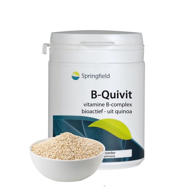 B-Quivit Complesso di Vitamine B di Springfield contiene un estratto di germogli di quinoa, naturalmente ricco di vitamine e minerali. Un processo di crescita e produzione brevettato garantisce una maggiore concentrazione di vitamine B organiche in forma biologicamente attiva.