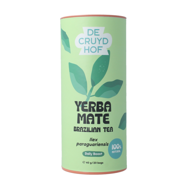 Yerba Maté thee (Ilex paraguariensis), een traditionele Zuid-Amerikaanse drank die van nature cafeïne bevat en kan bijdragen aan alertheid en vitaliteit. 100% puur, zonder toevoegingen.