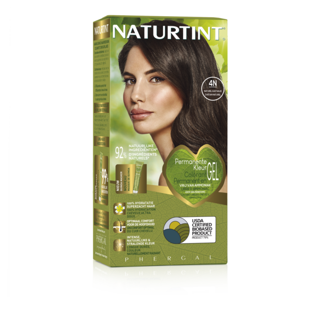 Moe van doffe, beschadigde haarkleuring? Naturtint 4N Natuurlijke Kastanje biedt u duurzame, stralende kleur én 80% sterker haar! Dankzij natuurlijke extracten en proteïnen, mét optimale hoofdhuidverzorging. De eerste gecertificeerde haarverf (79% BioBased) voor premium kwaliteit. Een slimme, plasticvrije keuze van VitAdvice. Kies voor gezond, prachtig haar!