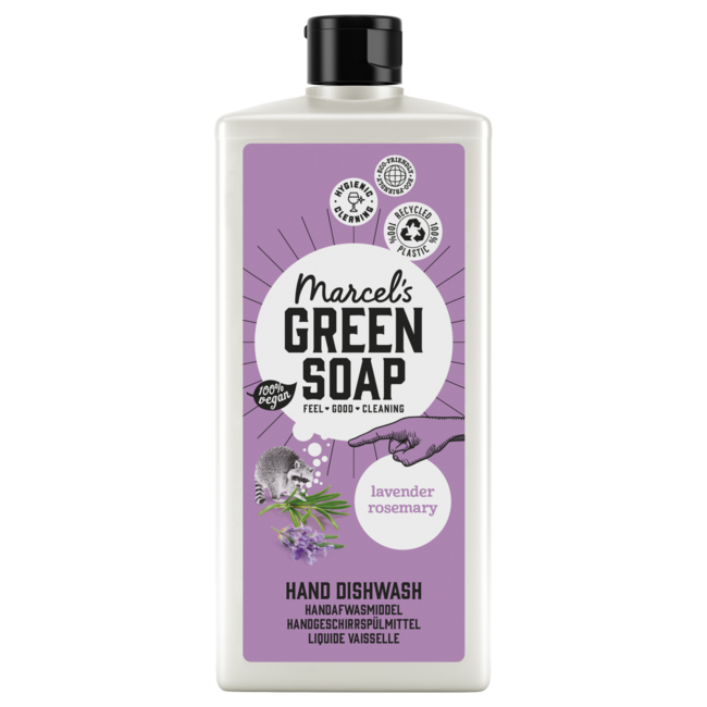 Marcel’s Green Soap afwasmiddel Lavendel & Rozemarijn is gemaakt van plantaardige zepen, vegan, minstens 97% biologisch afbreekbaar en komt in een fles van 100% gerecycled plastic. Marcel’s Green Soap afwasmiddel is gemaakt van plantaardige zepen en dus v Lees meer.