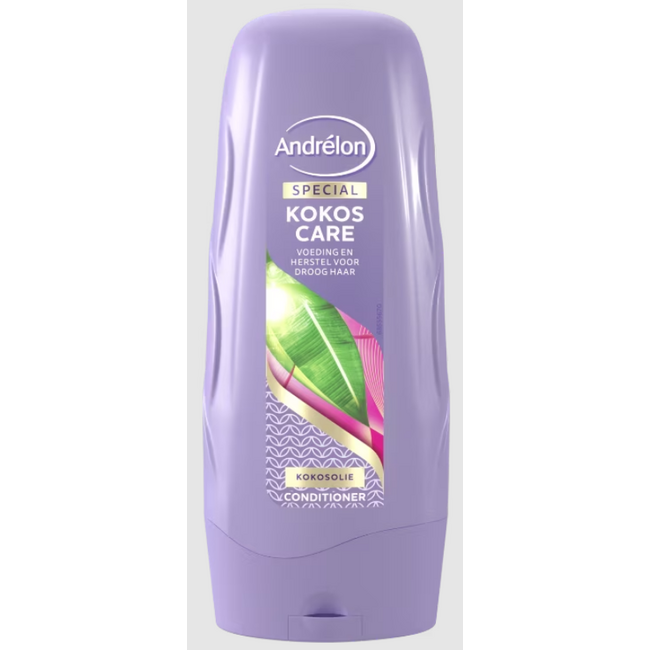 Droog, glansloos haar? De Andrelon Kokos Care Conditioner herstelt en voedt diep met kokosolie. Ervaar direct zijdezacht, glanzend, makkelijk doorkambaar haar.