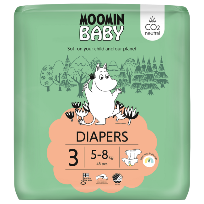 De Moomin Baby luier met speelse opdruk is een ecologisch luier. Dus goed voor het milieu en voor uw baby. Een luier met leuke opdruk voor baby"s (gewicht tussen de 6 en 8 kilogram). Lees meer.
