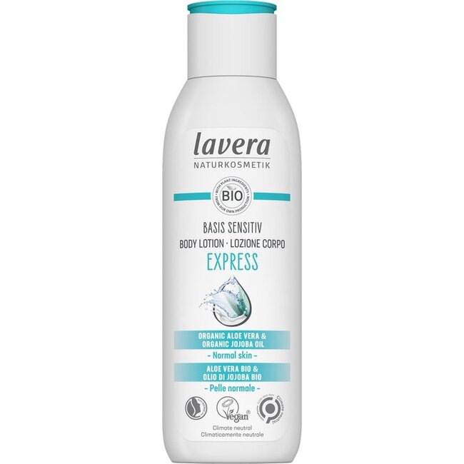 Droge, trekkerige huid? Gun je gezin snel comfort! De Lavera Basis Sensitiv Express Body Lotion trekt direct in en hydrateert 24 uur lang. Voel je huid fluweelzacht en laat haar stralen. Kies smart: premium verzorging, betaalbaar via VitAdvice, uw vertrouwde gezondheidspartner.