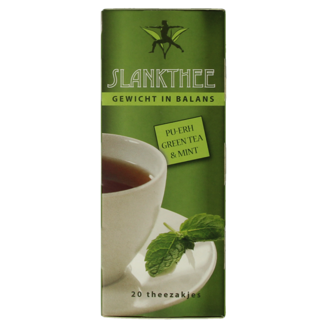 Pu-erh thee, groene thee, pepermuntblad, hibiscus, angelikawortel, guldenroede.
