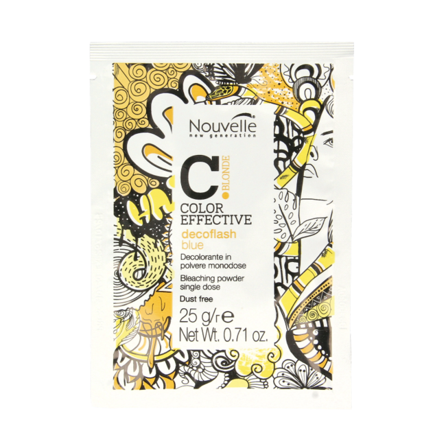 Het wordt geadviseerd deze bleekpoeder te mengen met Nouvelle Cream Peroxide. In een niet-metalen schaal: Meng de inhoud van het zakje (25g) met 50ml Color Effective Developor en meng tot er een gladde cream ontstaat. Niet gebruiken om wenkbrauwen en wimpers te kleuren.