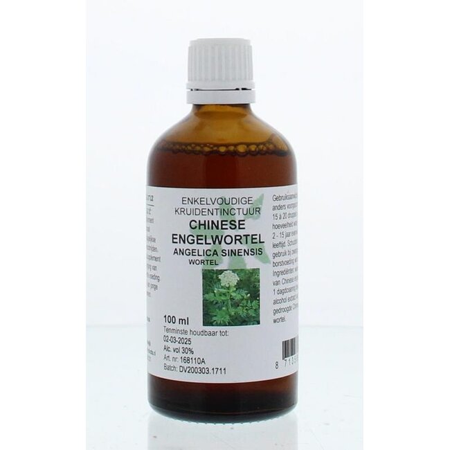 Natura Sanat Angelica sinensis rad/chinese engelwortel tinctEnkelvoudige kruidentinctuur gemaakt met 100 gram gedroogde wortels van Angelica sinensis / Chinese Engelwortel.