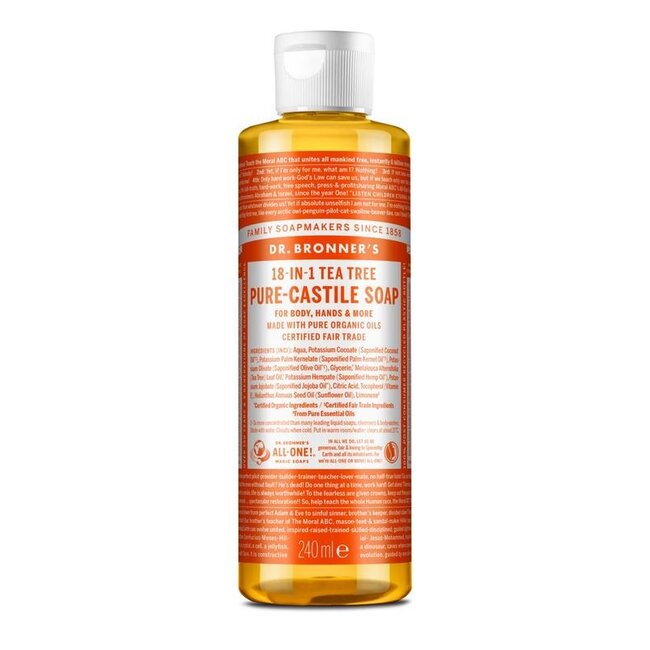 Zoek je pure, voordelige verzorging? Dr. Bronner's Tea Tree Vloeibare Zeep is jouw 18-in-1 oplossing voor huid, haar én huis! Ervaar pure, natuurlijke kracht. VitAdvice biedt expertkwaliteit 30% voordeliger, met plasticvrije levering. Ideaal voor het hele gezin. Kies VitAdvice.