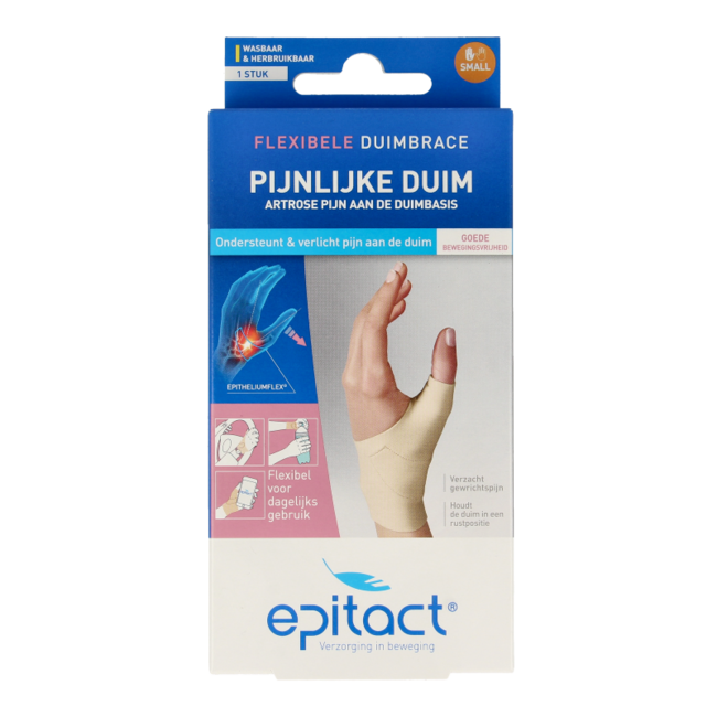Geen last meer van zeurende duimpijn? De Epitact Duimorthese Dag Links Maat S biedt de verlichting waar u naar zoekt bij artrose aan de duimbasis (rhizartrose).