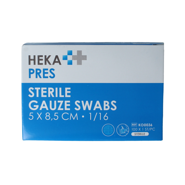 Wofür wird dieses Mittel verwendet Eine HEKA pres hydrophile Mullkompresse kann für trockene oder leicht sezernierende Wunden verwendet werden. Zudem kann die Kompresse zum Abtupfen oder Reinigen von Wunden, Haut oder Instrumenten verwendet werden. Die Schlitzkompresse mit Y-förmigem Einschnitt kann um den Drain oder die Kanüle herum angebracht werden.