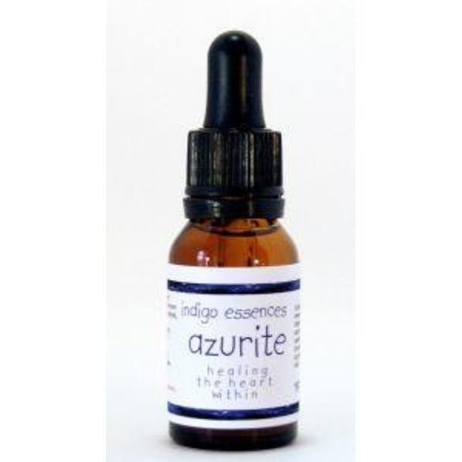 Indigo Essences AzuriteDiep blauw, met een beetje geel en groen. Deze steen lijkt op de wereld. Lost blokkades op die veroorzaakt zijn door angsten die het hart op slot hebben doen gaan. Geeft je de moed om te genezen. Opent het hart om weer liefde binnen te laten komen en geeft je weer het gevoel van comfort en innerlijke vrede. Laat de tranen los die achter de angsten zitten die je belemmeren om verder te gaan. Ontspant de starheid die in het emotionele lichaam aanwezig en zorgt ervoor dat de energie weer kan stromen. Azuriet is gerelateerd aan het derde ook en is een van de meest belangrijke indigo stenen. Deze essence kan volwassenen helpen om het indigo standpunt te begrijpen.