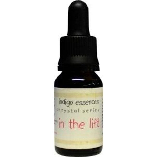 Indigo Essences In the liftEen essence om je te helpen weer op aarde te komen, heel goed voor mensen die het gevoel hebben hier nooit echt te zijn “aangekomen”. Kan ook behulpzaam zijn voor heel sensitieve wezentjes die hebben besloten hiernaartoe te komen maar vaak op het laatste moment bang worden. Deze essence vormt een schacht van licht, een soort virtuele lift, waardoor ze naar beneden kunnen komen. Bevat de energieën van Apophyllite en Peach Stillbite gedragen door bronwater en geconserveerd met brandy.