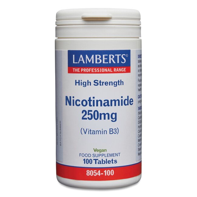 Nicotinamide 250mg (Vitamine B3) is geschikt voor vegetariërs en veganisten. Vitamine B3 draagt bij tot de normale functie van het zenuwstelsel en de instandhouding van een normale huid. Dit specifieke B-vitamine speelt ook een belangrijke rol in de vermindering van vermoeidheid en moeheid.