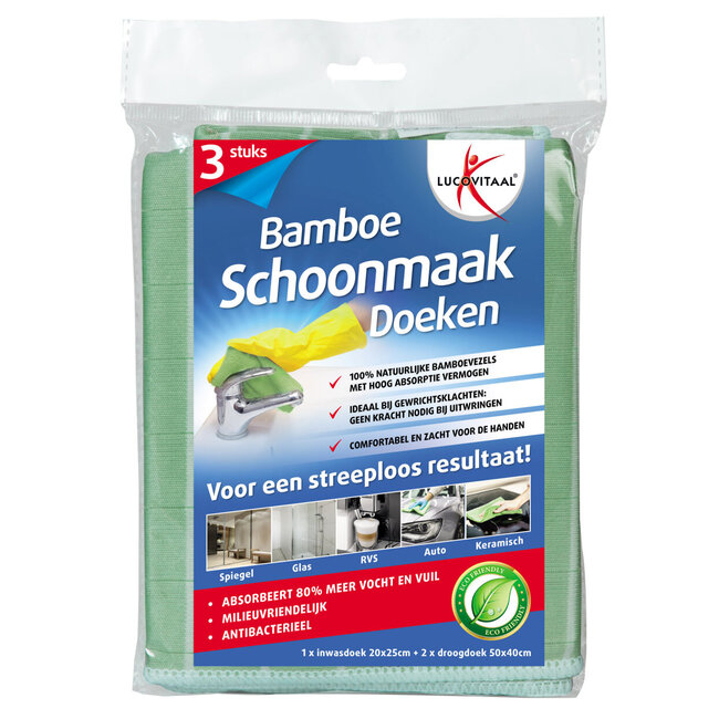 Gebruik de Bamboe Schoonmaakdoeken voor al je schoonmaakwerkzaamheden! Ramen, deuren, spiegels, RVS oppervlakken, salontafel, auto of badkamer: alles wordt stralend en streeploos schoon!