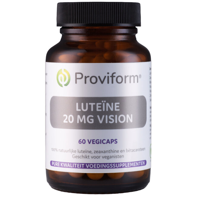 Luteïne 20 mg Vision is een uitgebreide en complete samenstelling voor de ogen en bevat 6 x zoveel zeaxanthine, aangevuld met natuurlijk bètacaroteen, zuurvrij vitamine C, natuurlijke vitamine E en zeer goed opneembare zink en selenium.