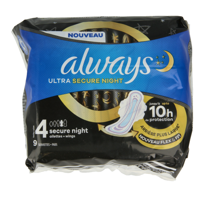Nooit meer zorgen 's nachts? Met Always Ultra Secure Night (9 stuks) slaap je tot 10 uur lang ongestoord. Superabsorberend met InstantDry, LeakGuard randjes én OdourBlock. Geniet van comfort en frisheid. Deze essentiële bescherming koop je slim en plasticvrij bij VitAdvice, jouw vertrouwde partner voor welzijn.