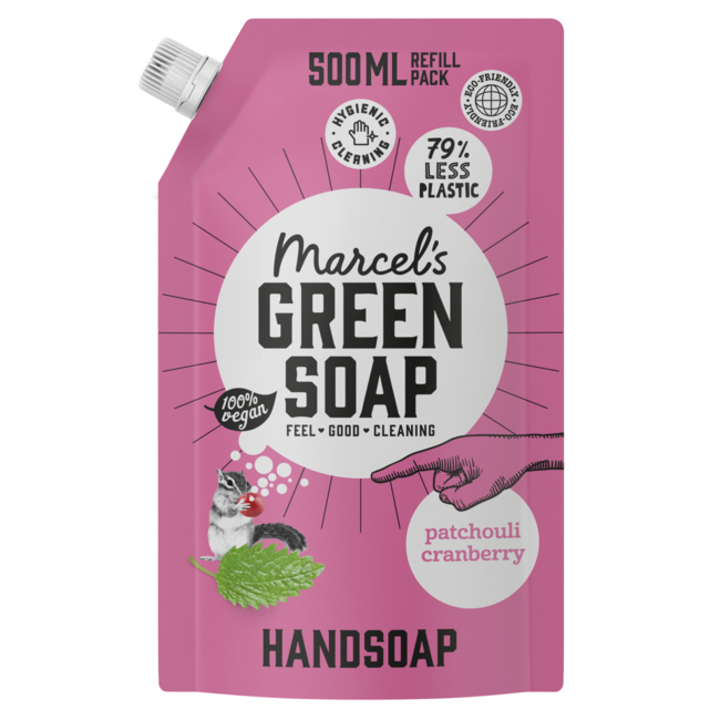 Moe van uitdrogende zeep of hoge prijzen? Kies Marcel’s Green Soap navul: zijdezachte handen voor het hele gezin, met patchouli & cranberry. Minstens 97% biologisch afbreekbaar en 100% gerecycled plastic.