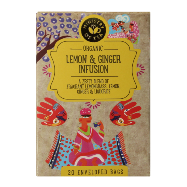 Citroengras*, gemberwortel*, zoethoutwortel*, citroenschil 5%*, natuurlijke citroenaroma 3%*, natuurlijke gemberaroma 1%*.
