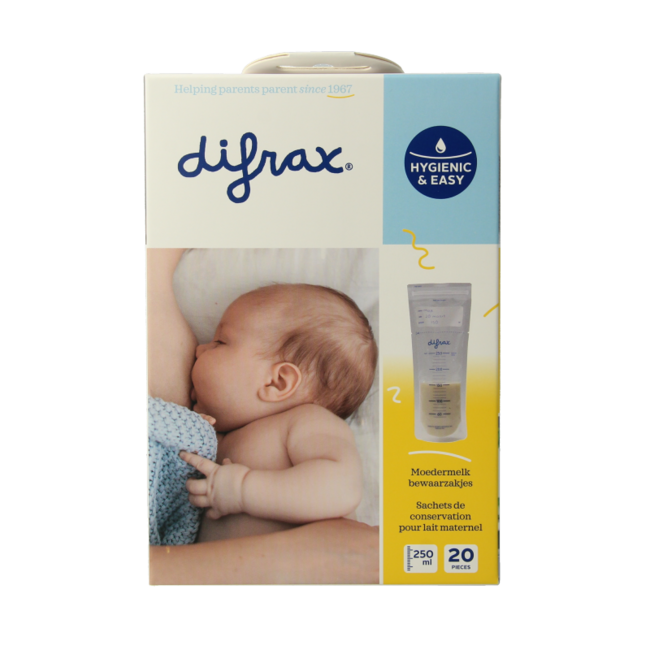 Difrax Moedermelk bewaarzakjes BtoB Met de Difrax moedermelk en borstvoeding bewaarzakjes kun je borstvoeding gemakkelijk bewaren in de koelkast of diepvriezer. Met handig etiket om de datum van afkolven en inhoud op te schrijven.