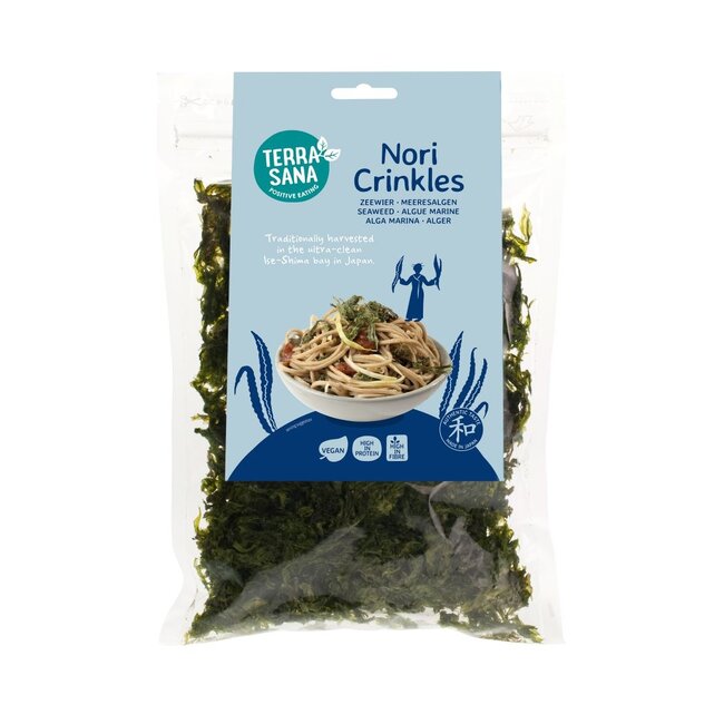 Nori snippersNorisnippers hebben een licht hartige smaak en een lekker knapperige bite. Lekker om rauw door een salade te eten, een misosoep mee af te maken of door soba- of udongerechten te doen. Norisnippers worden geoogst en verwerkt in de ultraschone Japanse Ise-Shima baai.