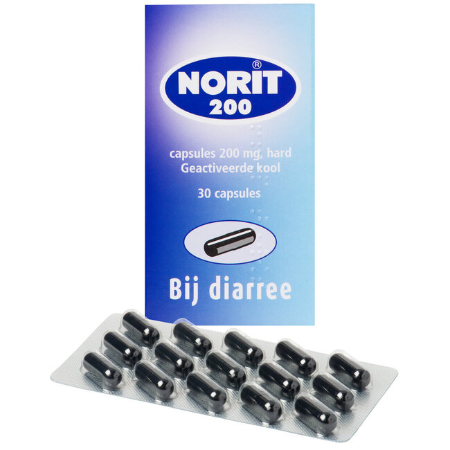 NORIT 200, capsules 200 mg, hard De werkzame stof in Norit 200, geactiveerde kool, kan in het maagdarmkanaal aanwezige schadelijke of ongewenste stoffen binden (adsorberen).