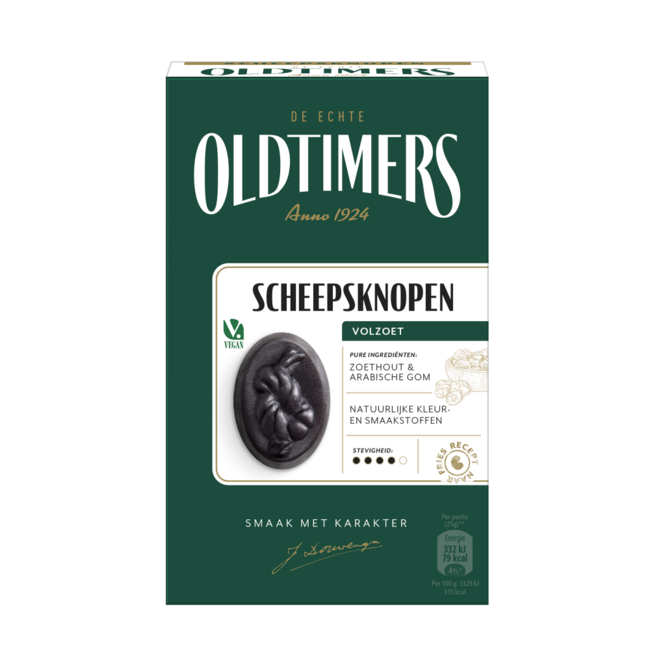 ScheepsknopenOldtimers Scheepsknopen is de klassieker onder de zoete drop. Een ambachtelijk recept gemaakt met een flinke dosis Friese nuchterheid en alleen de beste pure ingrediënten. Arabische gom zorgt voor de stevige structuur en zoethout en Hollandse bietensuiker voor die uitgesproken smaak. Door onze dropmakers vakkundig in vorm gegoten en geglansd voor een verrassend mondgevoel.