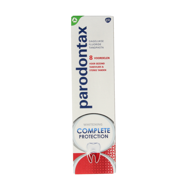 Bloedend tandvlees of onfrisse adem? Parodontax Complete Protection Whitening pakt tandplak 4x effectiever aan*, dé oorzaak van tandvleesproblemen. Geniet van gezond tandvlees, een superfrisse adem én wittere tanden, met fluoride voor sterk glazuur.
