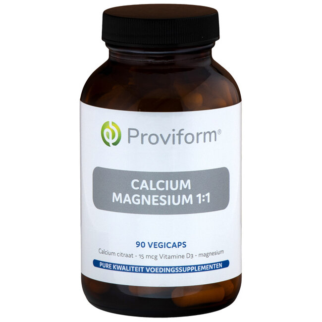 Proviform Calcium magnesium 1:1 & D3Mineralen in een groene basis van waterkers, peterselie en alfalfa.