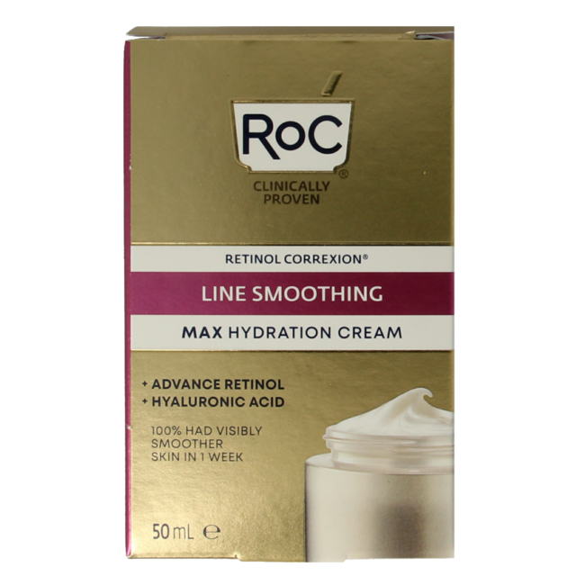 Zeg vaarwel tegen lijntjes! De ROC Retinol Correxion Line Smoothing Max Hydration pakt fijne lijntjes aan met Retinol & Hyaluronzuur. Ervaar 48u hydratatie en een zichtbaar gladdere huid in slechts 1 week. VitAdvice biedt je deze premium, expert-gesteunde verzorging tot 30% voordeliger, plasticvrij geleverd. De slimme, bewuste keuze voor een stralende huid, voor het hele gezin.