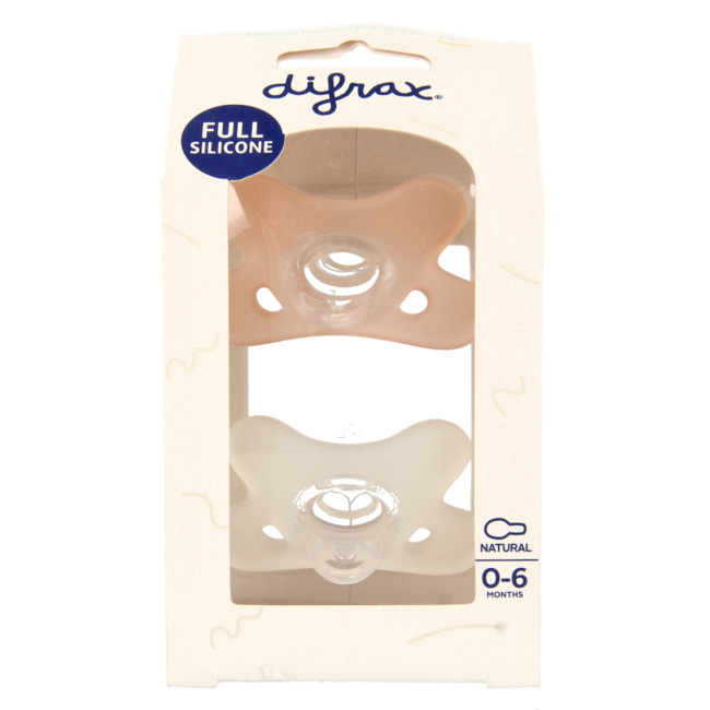 De Difrax Siliconen Fopspeen Natural 0-6 Maanden heeft een zacht siliconen schildje, knop en zuiggedeelte. De siliconen fopspeen is gemaakt uit één stuk.