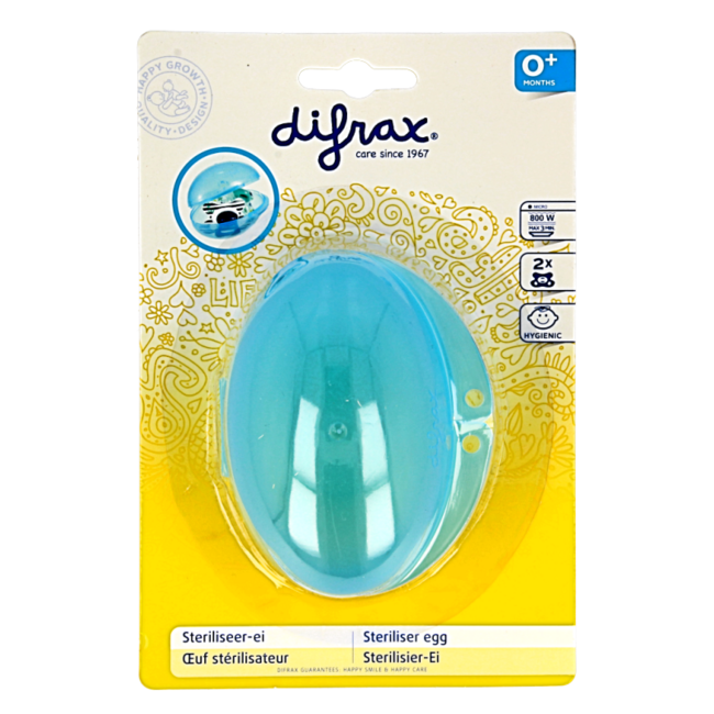 Doe één of twee fopspenen in het steriliseerei en vul dit met 10 ml water, tot het maatstreepje. Sluit het deksel en leg het ei in de magnetron. Zet deze 3 minuten aan op 800 Watt en de fopspenen zijn gesteriliseerd. Laat het steriliseerei even afkoelen e