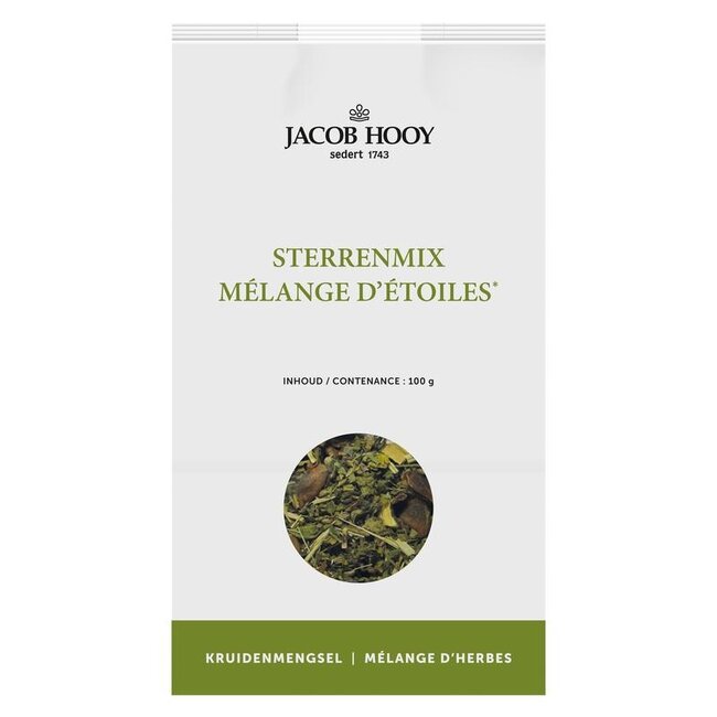 Steranijs (illicium verum), anijszaad (pimpinella anisum), zoethout (glycyrrhiza glabra), kruizemunt (mentha spicata), malvablad (folia malvae), moerasspirea (filipendula ulmaria), jeneverbes (juniperus communis).