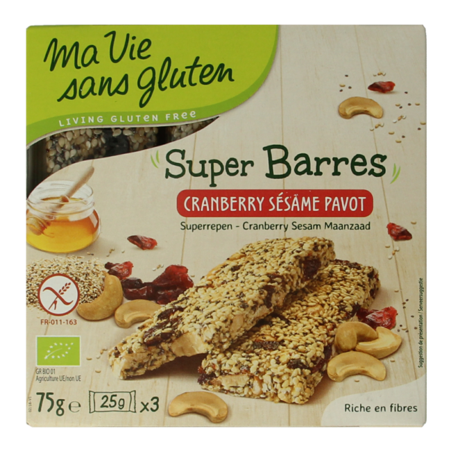 Super repen sesam & cranberry glutenvrij bioMa Vie Sans Super repen sesam & cranberry glutenvrij bio