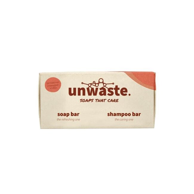 Moe van dure, onduurzame verzorging die niet levert wat je belooft? De Unwaste Duopack sinaasappel zeep- & shampoo bar is jouw slimme, natuurlijke én voordelige oplossing voor het hele gezin! Deze circulaire, vegan bars met pure sinaasappelolie reinigen mild, verzorgen intensief (ideaal voor droog en/of krullend haar) en gaan tot 3x langer mee. Geniet van een frisse huid en glanzend haar, met een gerust hart.
