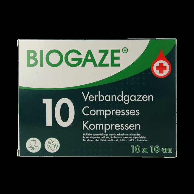 Na zorgvuldige ontsmetting, zo nodig een stuk Biogaze verbandgaas afknippen waarmee de wond ruim bedekt kan worden. De twee laagies beschermfolie verwijderen en het Biogaze verbandgaas rechtstreeks op de wond aanbrengen. Hierop een steriel verbandgaas aan