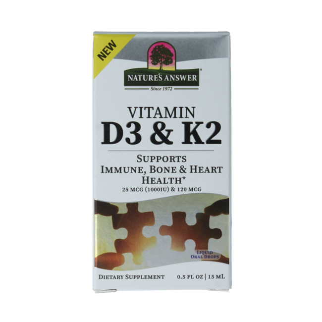Natures Answer Vitamine D3 en K2 druppelsSynergie van D3 en K2.