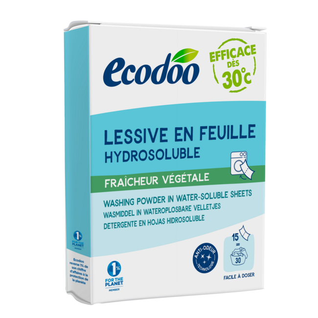Ecodoo Waschstreifen: leicht zu tragen, einfach zu dosieren, leicht zu verstauen. Effektiv ab 30°C, selbst bei Kurzprogrammen. Geeignet für alle Stoffe, selbst für die empfindlichsten. Die Kombination aus kraftvollen natürlichen Reinigungsmitteln entfernt Lees meer.