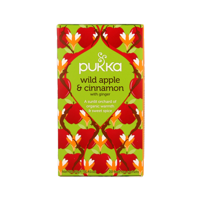 Kaneelbast (28%), zoethoutwortel, gemberwortel (14%), sinaasappelschil, kamillebloem, wilde appel (6%), kardemompeul, sinaasappel essentiële olie aroma, kruidnagel. 100% gecertificeerd biologisch