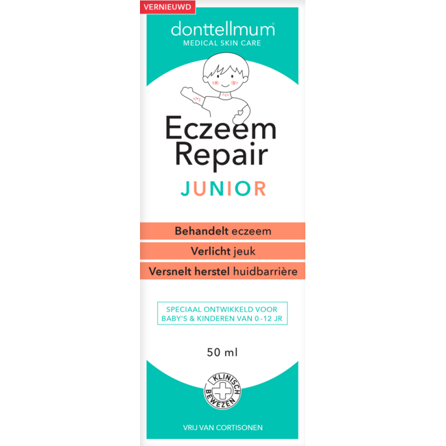 Cierpisz na egzemę? Donttellmum Eczeem Repair Junior natychmiast łagodzi swędzenie, zaczerwienienie i suchość. Ten krem regeneruje i chroni Twoją skórę dzięki 3 udowodnionym, skutecznym lipidom identycznym z lipidami skóry. Odpowiedni dla całej rodziny (od 8 tygodnia życia). VitAdvice: 30% korzystniejsza cena, bez plastiku i wsparcie ekspertów. Wybierz komfort i ukojenie dla skóry!