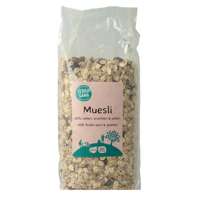 Musli Terrasana z 40% zawartością orzechów, owoców i nasion bio