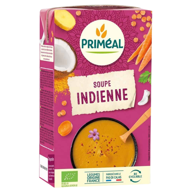 Primeal Indyjska zupa z czerwonej soczewicy, kokosa i curry bio 1 Litr